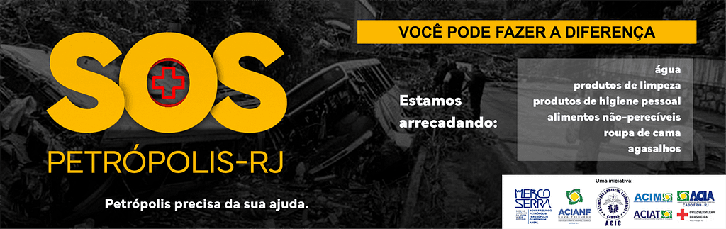 A Associação Comercial, Industrial e Agrícola de Nova Friburgo, ACIANF, está promovendo, em parceria com a rede de Negócios da Serra Verde Imperial, Mercoserra, e Associação Comercial, Industrial e Agrícola de Teresópolis, ACIAT, uma ação solidária que tem como objetivo arrecadar água mineral, produtos de limpeza, higiene pessoal, alimentos não-perecíveis, roupas de cama e agasalhos para as vítimas das fortes chuvas que atingiram a cidade de Petrópolis na última terça-feira, 15.