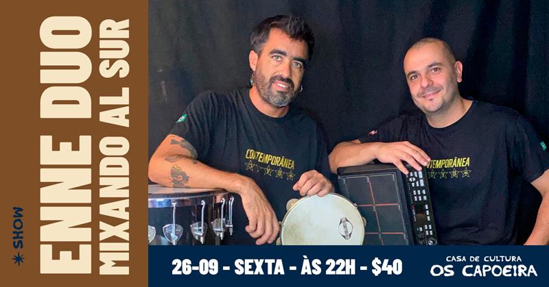 Já na sexta-feira, 26 de setembro, o público poderá conferir o projeto Enne Duo Mixando Al Sur, formado pelos percussionistas Nacho Delgado e Nacho Seijas.