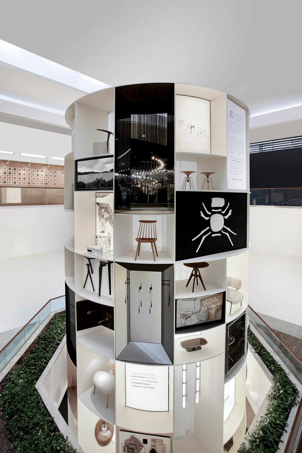 A obra, inaugurada em 9 de setembro, integra a programação da CASACOR Rio 2025 e ocupa três pavimentos do Fashion Mall, em São Conrado. Em formato cilíndrico, com 130 nichos distribuídos em 12 metros de altura e 6 metros de circunferência, a instalação pode ser contemplada tanto pelos visitantes da mostra quanto pelo público que circula pelo shopping.