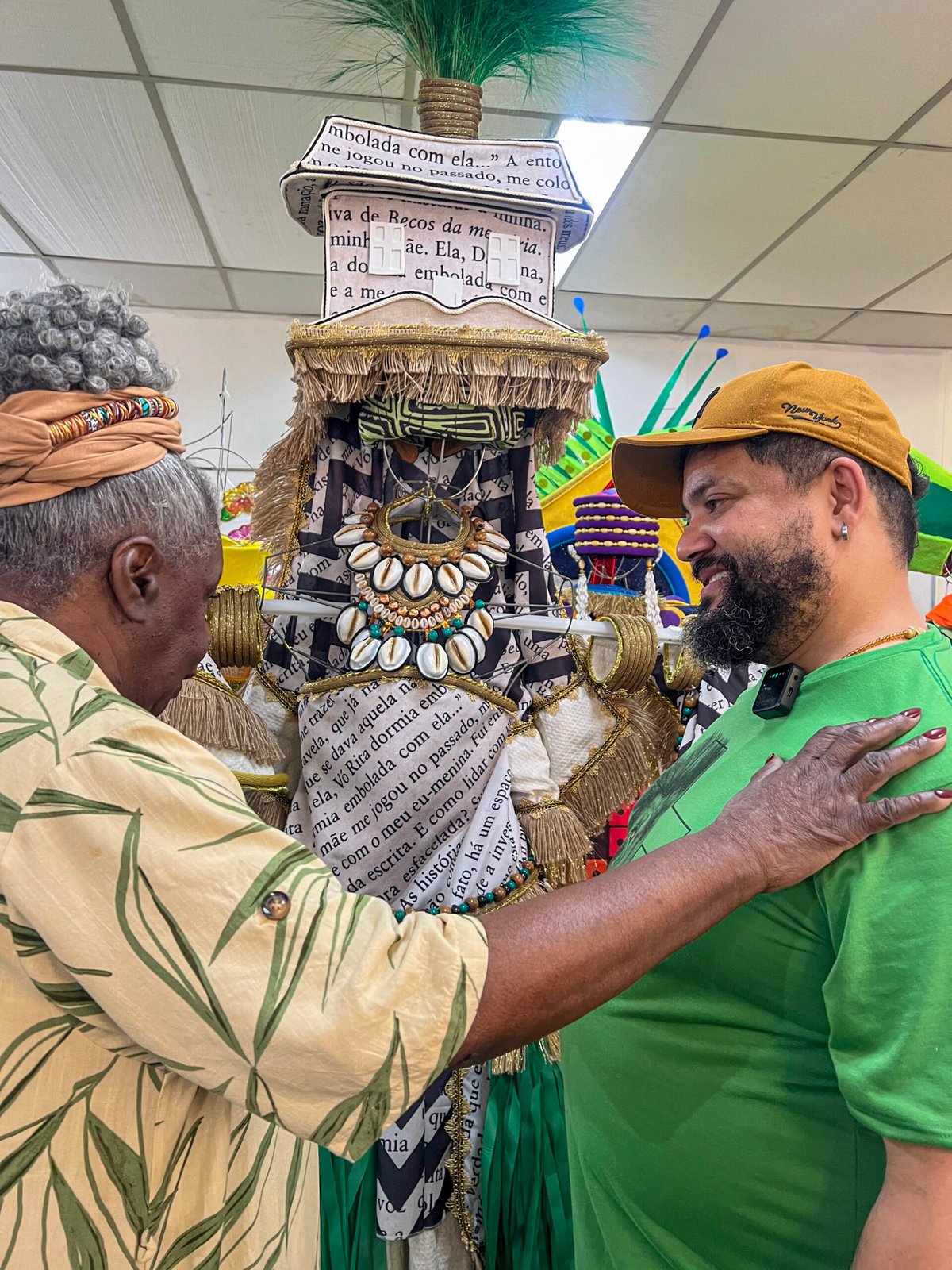 Durante a visita, a escritora destacou a importância do trabalho coletivo que move o Carnaval e se mostrou emocionada ao ver o resultado do projeto: