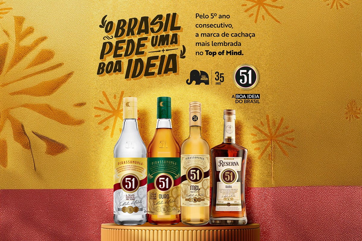Desde 2021, a Cachaça 51 vem mantendo uma trajetória de destaque e reconhecimento contínuo. Ao alcançar pela quinta vez consecutiva o prêmio Top of Mind, a marca reafirma sua liderança de mercado e o vínculo com milhões de consumidores em todo o país. A conquista celebra a combinação entre tradição, qualidade, comunicação estratégica e responsabilidade socioambiental, consolidando a 51 como símbolo de orgulho nacional.