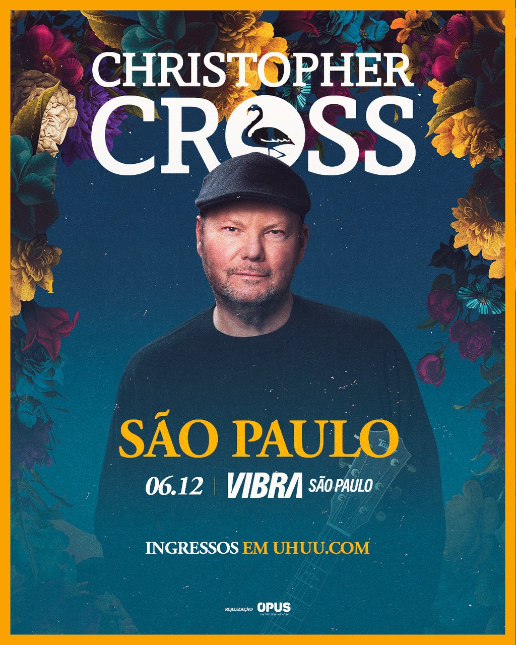 O lendário cantor, compositor e guitarrista norte-americano Christopher Cross, ícone das love songs e vencedor de múltiplos prêmios internacionais, retorna ao Brasil após nove anos. O artista se apresenta no dia 6 de dezembro, na Vibra São Paulo, em um espetáculo que promete emocionar o público com sucessos que marcaram gerações.