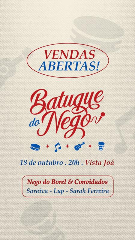 A primeira edição acontece no dia 18 de outubro, no badalado espaço Vista Joa, no Rio de Janeiro, reunindo música, energia positiva e grandes encontros. Em formato intimista, Nego do Borel receberá convidados de peso para dividir o palco em uma roda de pagode inesquecível, cheia de emoção e surpresas.